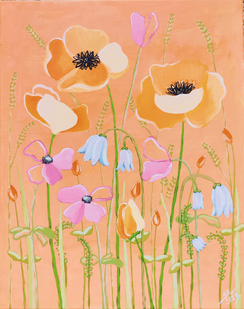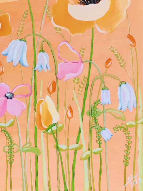 40×50 cmAkryyli kankaalle2023280 €”New Blooms Emerging” on suloinen kuvaus uuden kesän kasvusta ja kesäpäivien lämpimästä valosta, jonka voi tuntea ihollaan aina, kun pysähtyy hetkeksi teoksen äärelle.